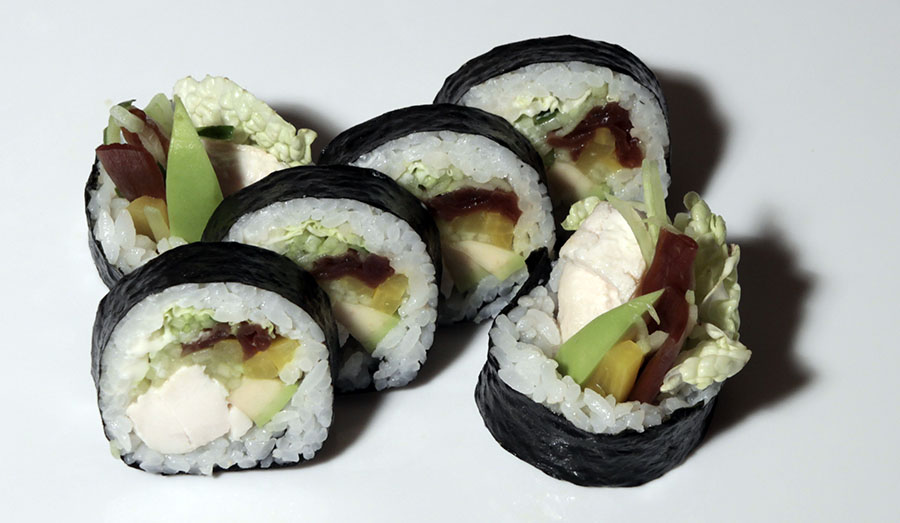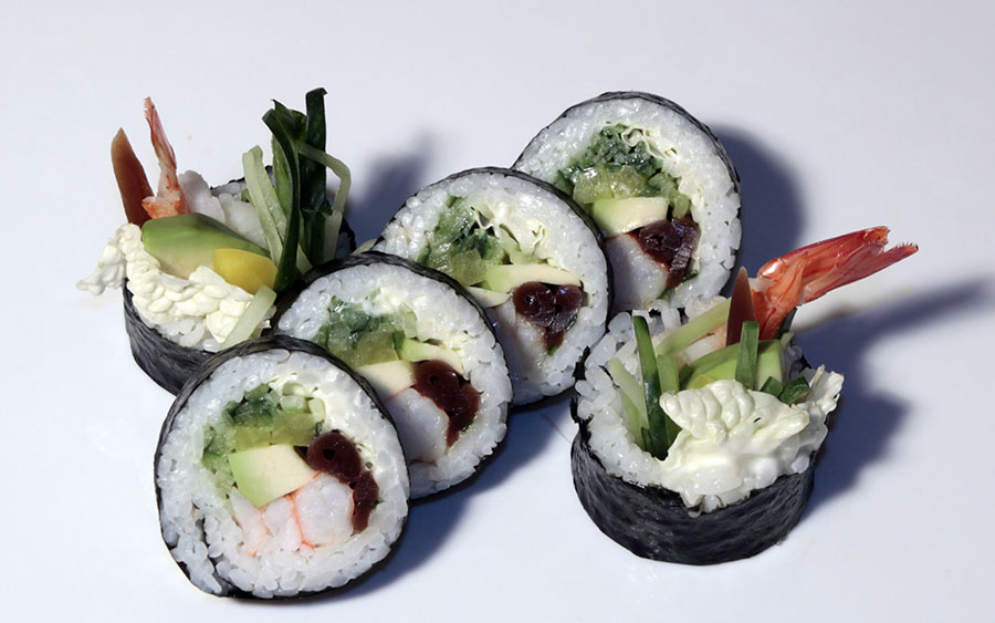 EBI FUTO – 33 PLN EBI FUTO (majonez, sałata, ogórek, avocado, kanpyo, oshinko, krewetka gotowana) – 6 sztuk
