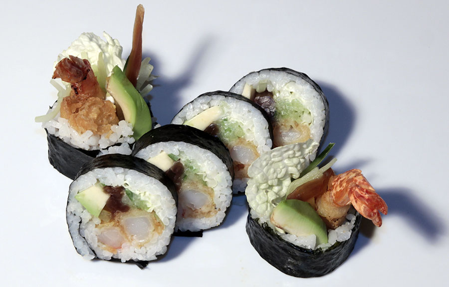 EBI TEN FUTO – 35 PLN EBI TEN FUTO (majonez, sałata, ogórek,avocado, kanpyo, krewetka w tempurze) – 6 sztuk