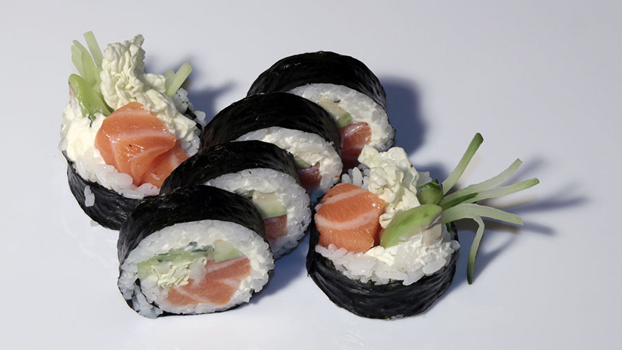 GRILL SALMON FUTO – 31 PLN GRILL SALMON FUTO (serek, sałata, ogórek, avocado, łosoś pieczony) – 6 sztuk