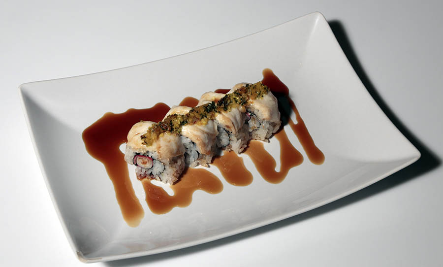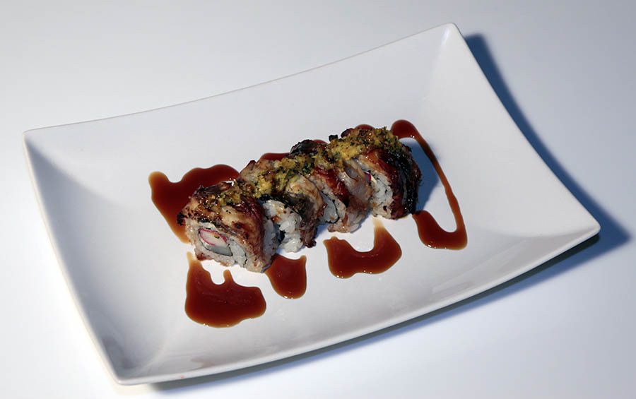 GRILL UNAGI GRILL UNAGI – 25 PLN (4 sztuk) – 45 PLN (8 sztuk) (węgorz, paluszek krabowy, brzoskwinia, philadelphia, dressing)