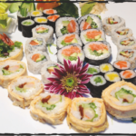8 gold sweet roll, 2 gunkan tatar łosoś,